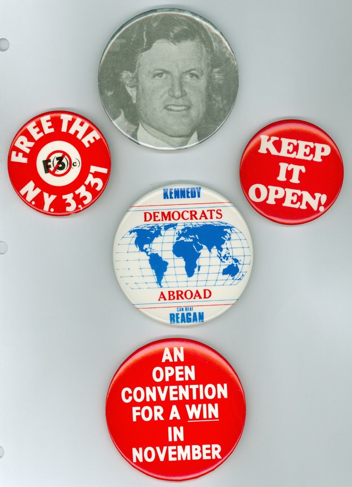 5 Vintage 1980 President Ted Kennedy Political Pinback Buttons - Open Convention