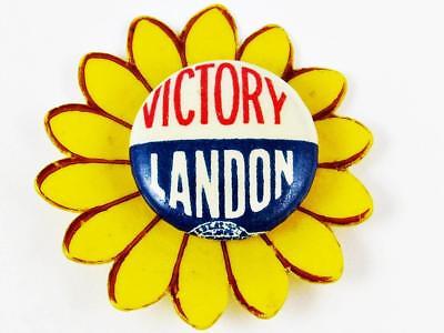 VINTAGE 1936 ALF LANDON VICTORY SUNFLOWER REPUBLICAN GOP POLITICAL PIN BUTTON