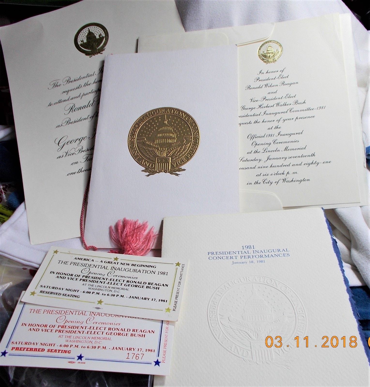 Title (ebay affiliate link): 1981 Reagan Bush Inaugural Invites & Prog., Tickets, Concert Program - 6 Pieces.