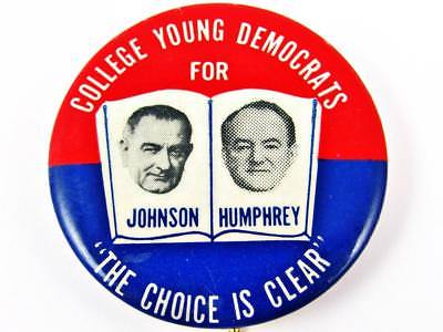 VINTAGE 1964 JOHNSON & HUMPHREY COLLEGE YOUNG DEMOCRATS POLITICAL PIN BUTTON