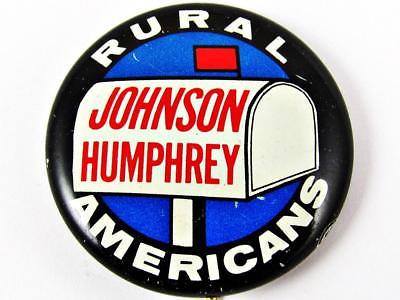 VINTAGE 1964 JOHNSON & HUMPHREY RURAL AMERICANS DEMOCRATIC POLITICAL PIN BUTTON