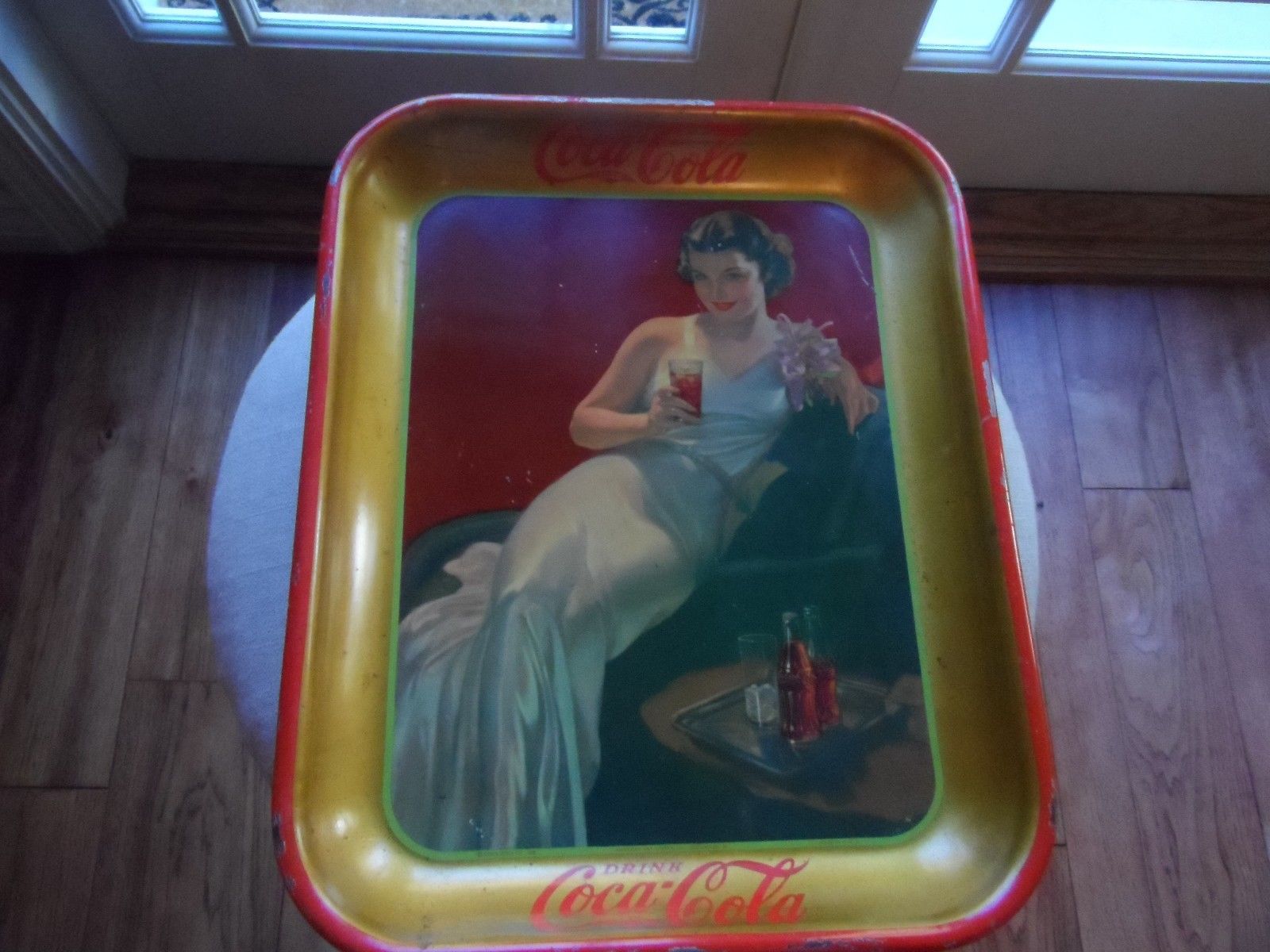 Title (ebay affiliate link): VINTAGE COCA COLA GIRL ON COUCH ORIGINAL SERVING TRAY 1936