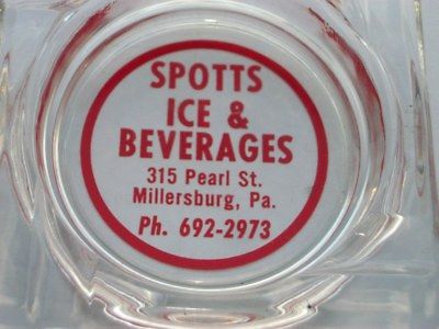 Title (ebay affiliate link): Rare Spotts Ice & Beverages 315 Pearl St. Millersburg, Pa. glass ashtray