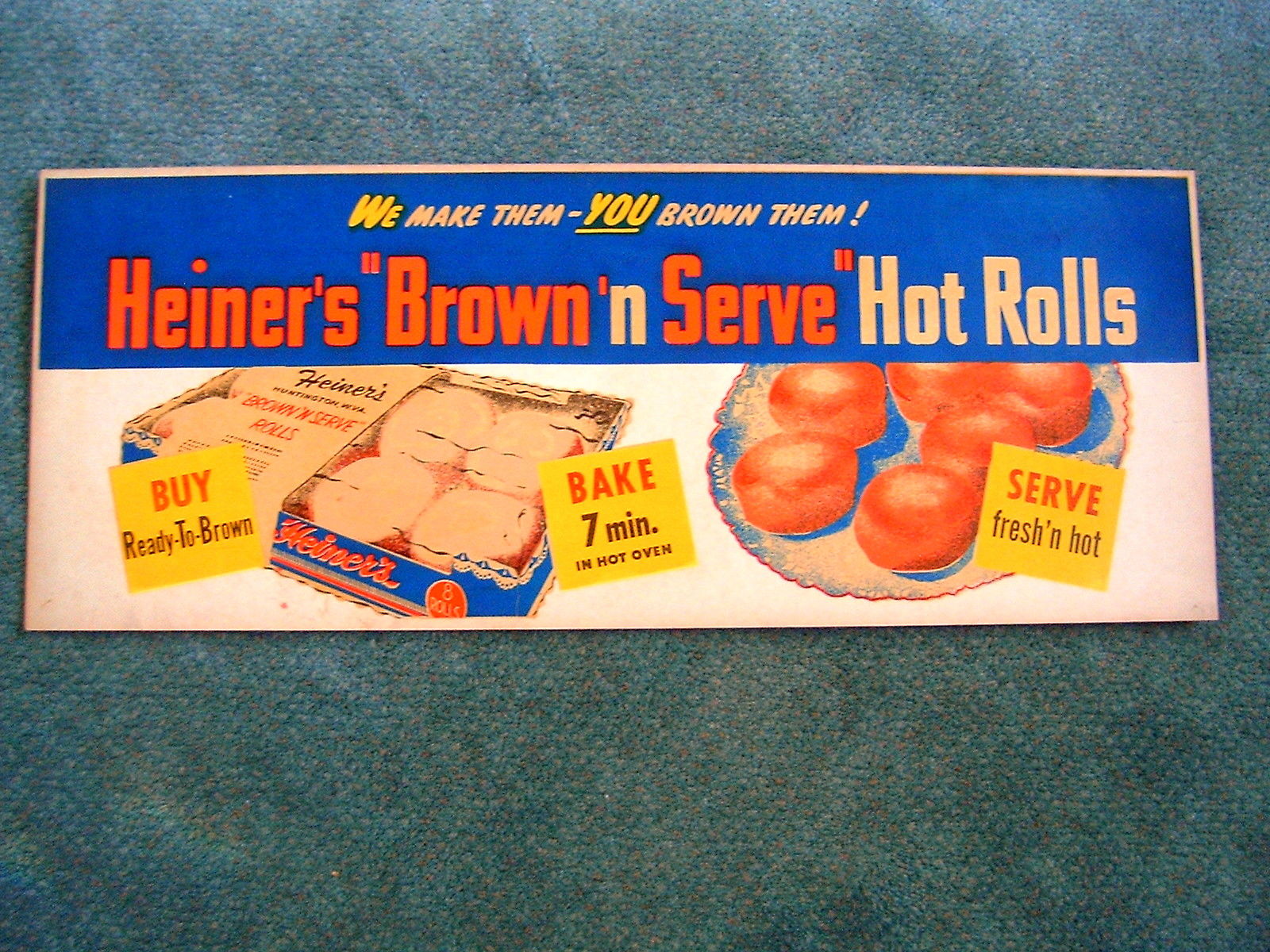 Title (ebay affiliate link): Heiner''s Bakery of Huntington, WV - Brown''n Serve Rolls - Advertising Sign