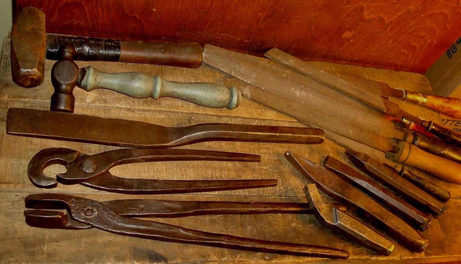 Title (ebay affiliate link): VINTAGE BLACKSMITH TONG FORGING HAMMER TOOL LOT CHISELS, FILES BLADESMITH TOOLS