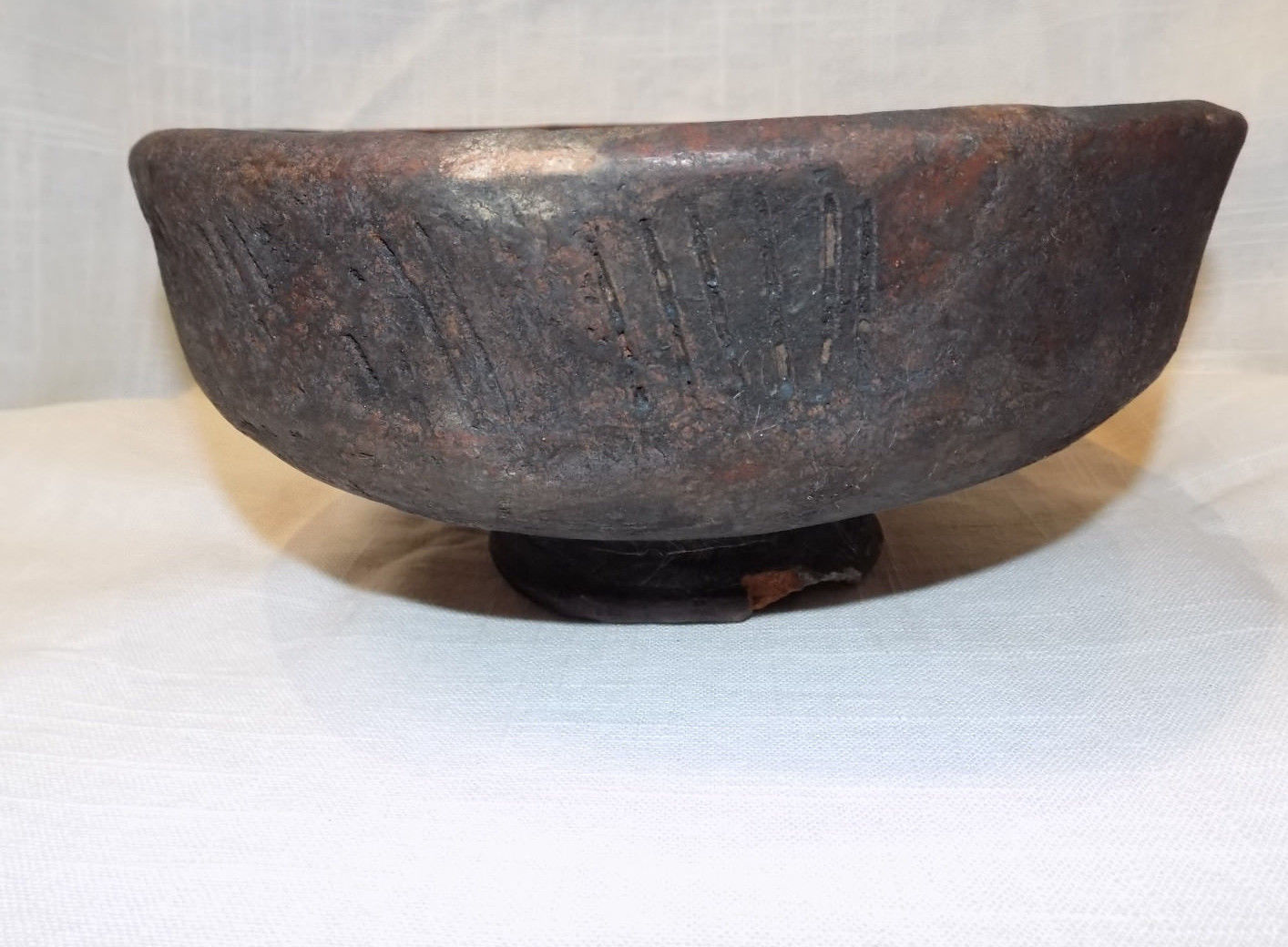 Title (ebay affiliate link): Pre-Columbian Clay Pedestal Bowl with Incised Lines
