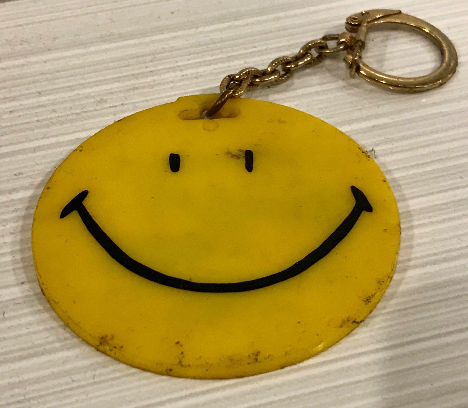 Vintage Smiley Face Keychain Key Ring 1970''s Basket of Cheer Rt 46 Dover NJ