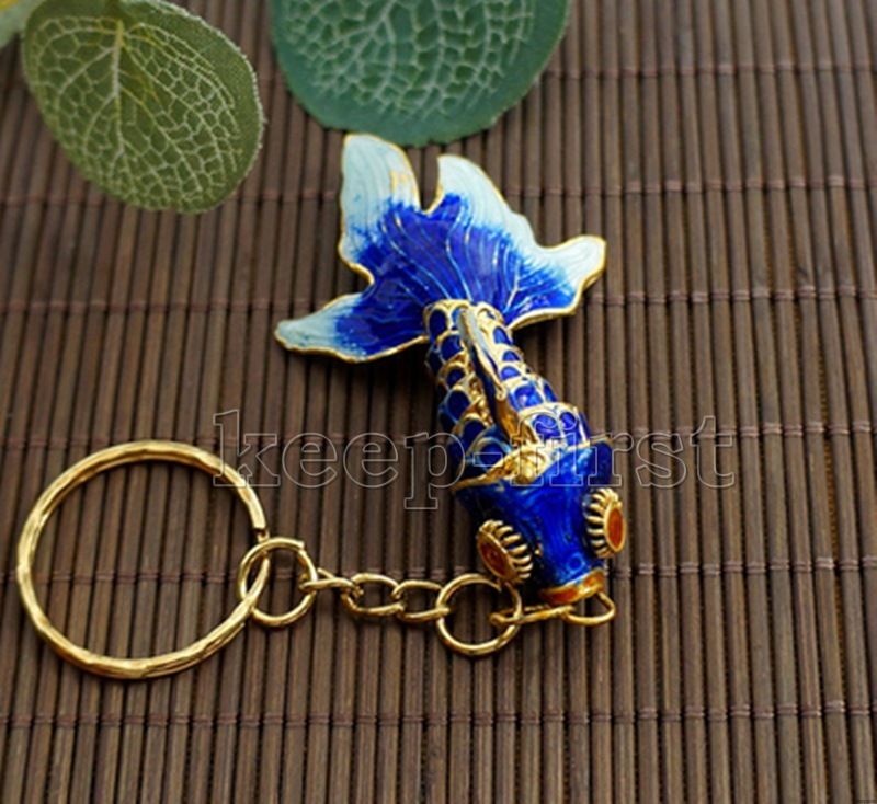 Title (ebay affiliate link): Dark Blue Vintage Chinese Cloisonne Enameled Colorful Gold Fish key chain