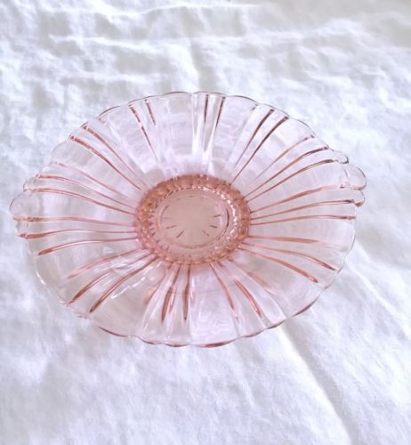 Title (ebay affiliate link): Excellent Vintage Pink Depression Glass Ribbed Footed Handled Shallow Bowl 8 1/2
