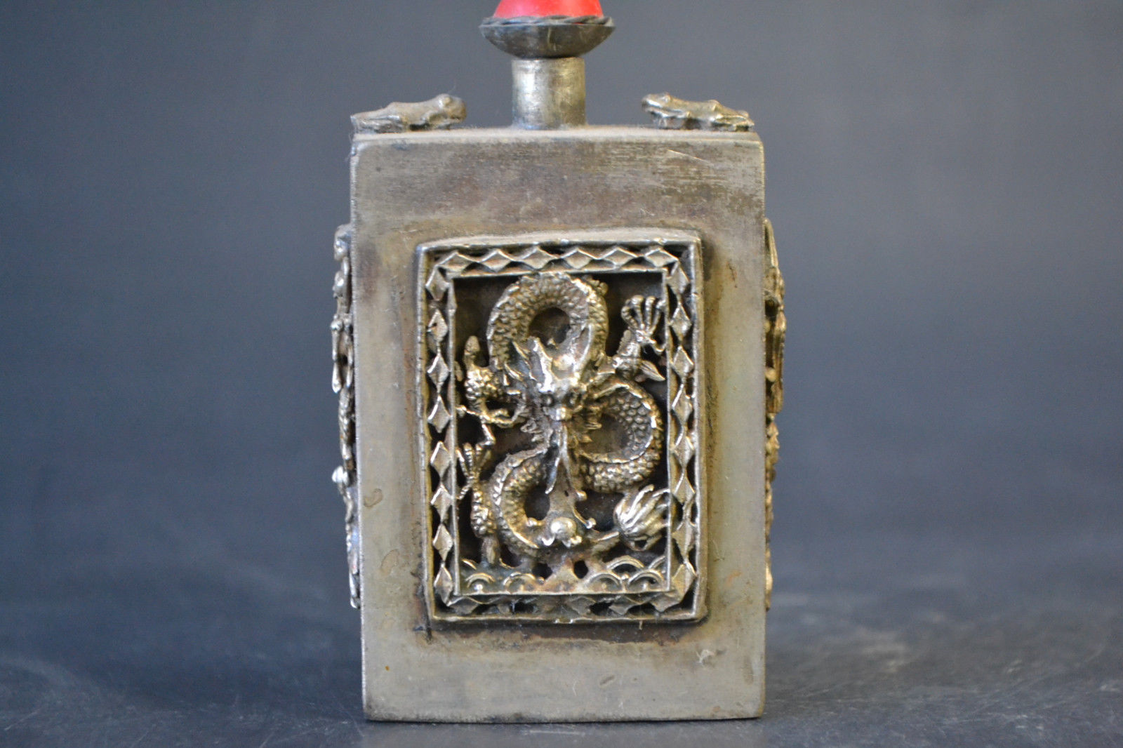 Title (ebay affiliate link): China Collectible Old copper Silver plate dragon phoenix relief Snuff Bottle