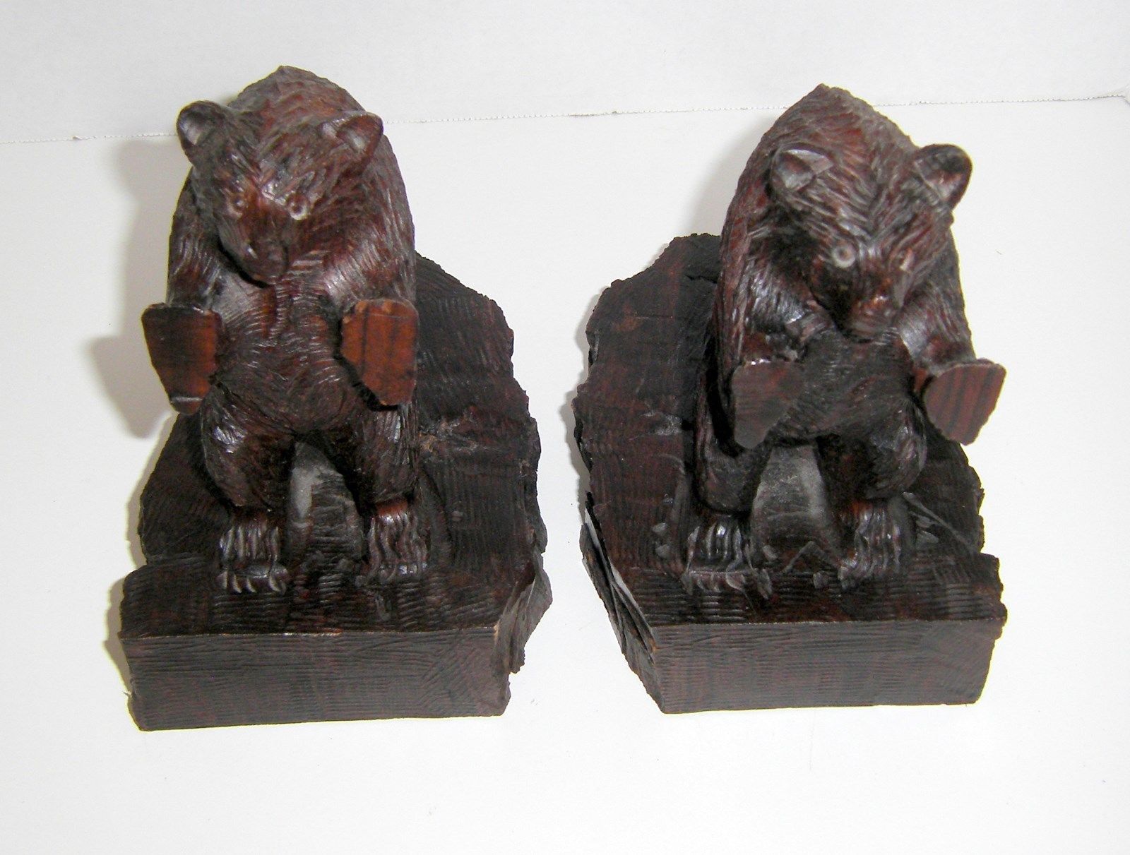 CARVED STANDING BEAR BOOKENDS - HEAVY SOLID WOOD - FOLKART