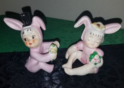 Title (ebay affiliate link): ADORABLE Vintage HOLT HOWARD Pixie Kids~Easter Bunny Candle Huggers~JAPAN!
