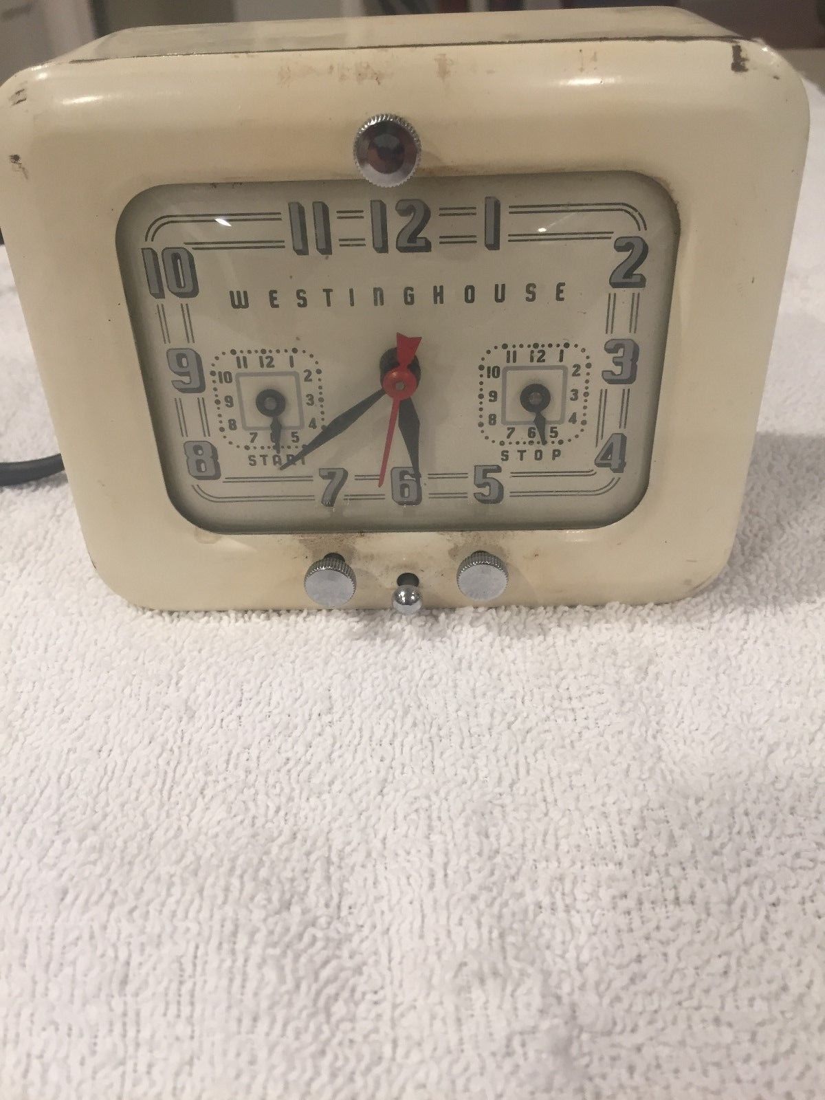 Title (ebay affiliate link): Vintage Art Deco Westinghouse TC-81 Stove top Kitchen Clock for Auto-roaster