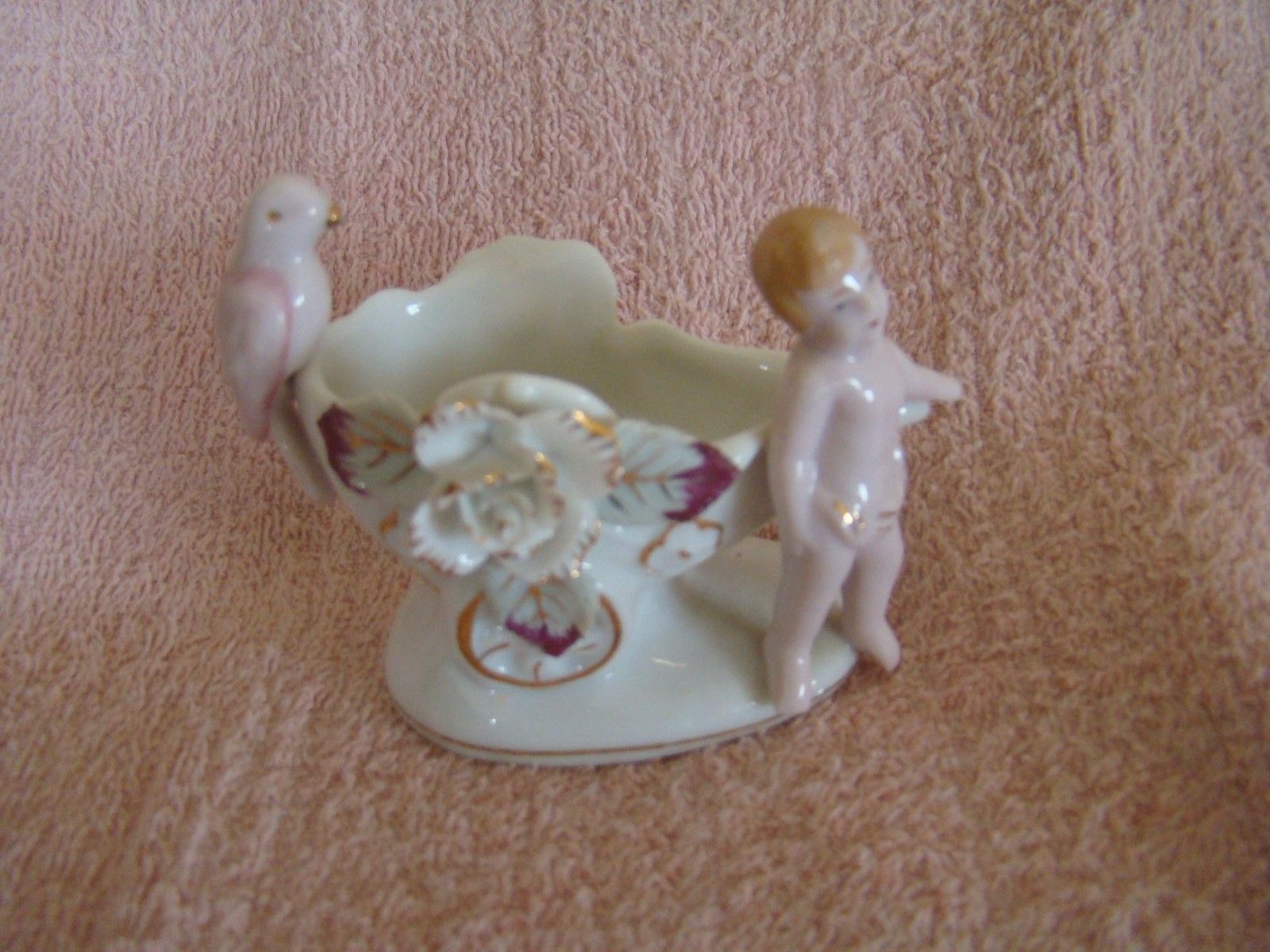 Title (ebay affiliate link): Vtg Porcelain Cherub with Parrot and Carriage wagon Figurine 3-1/2" w x 2-3/4" H