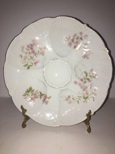 Title (ebay affiliate link): Antique Austrian Porcelain Gold Rimmed Oyster Plate Floral Clover Vintage