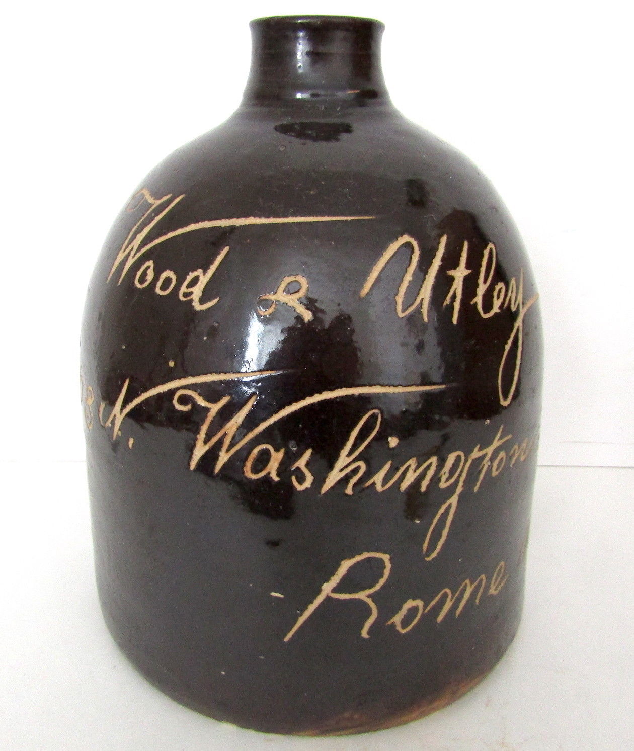 Rare Wood & Utley Brown Stoneware Jug Rome, NY Broken Handle