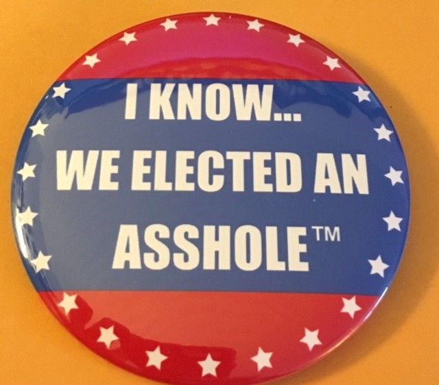 Title (ebay affiliate link): 3" Anti-Trump "I Know...We Elected an A..Hole" Button From NYC Rally, 1/20/2018
