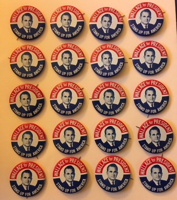 Title (ebay affiliate link): Twenty 1 3/4" Wallace for President "Stand Up for America" Campaign Pin Buttons