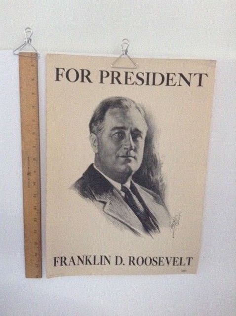 Title (ebay affiliate link): Original 1936 Campaign Poster FDR, Franklin Delano Roosevelt, "FOR PRESIDENT"