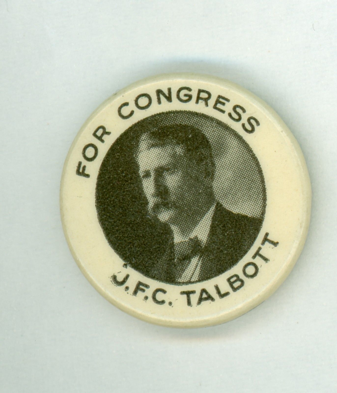 Vintage 1890s Maryland US Congressman JFC Talbott Political Camp Pinback Button