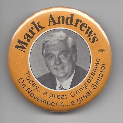 Title (ebay affiliate link): Mark Andrews North Dakota (R) US Senator 1980 race political pin button