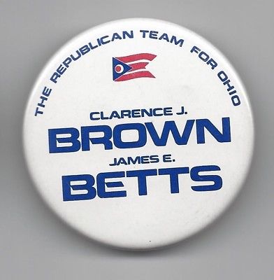 Title (ebay affiliate link): Clarence Brown James Betts (R) Ohio Governor candidate 1982 political pin button