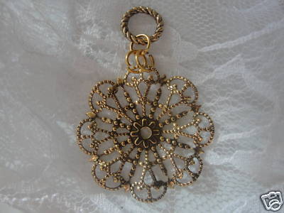 Title (ebay affiliate link): ANTIQUE BRASS GOLD VINTAGE PENDANT NECKLACE FILIGREE!!!