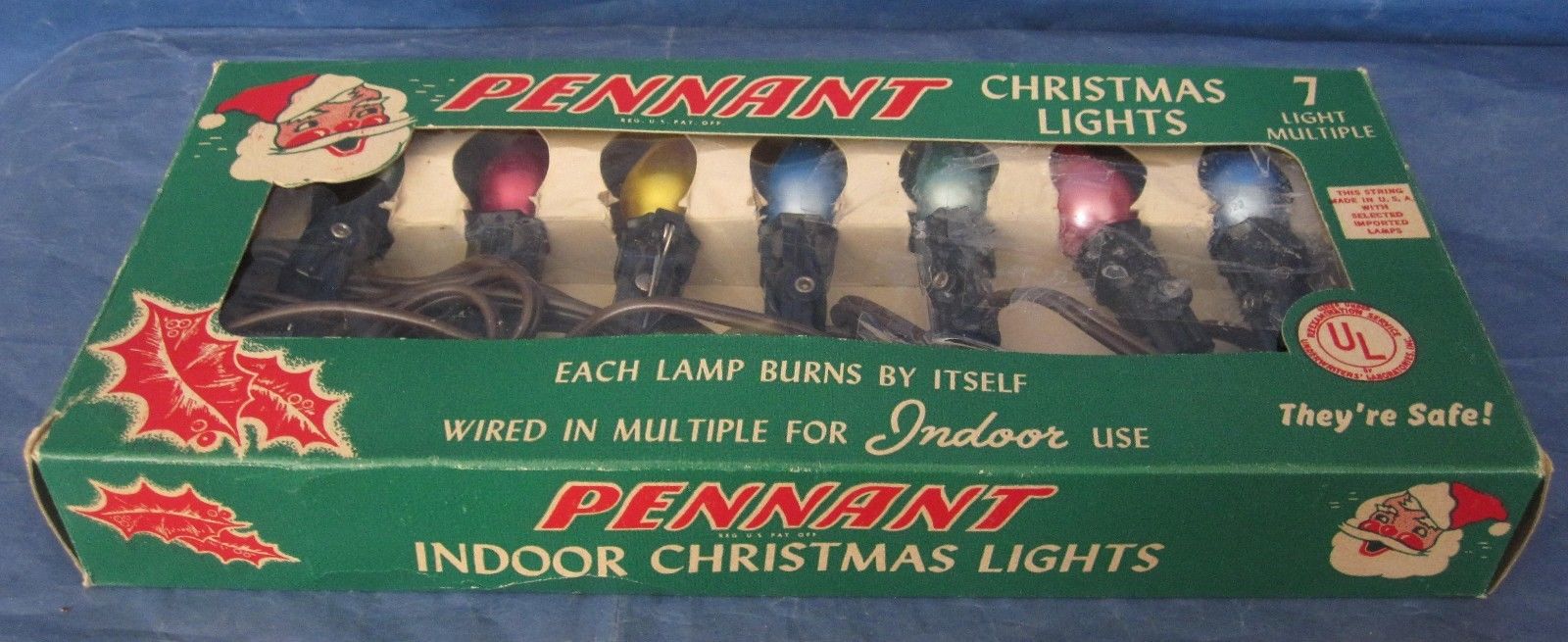 Title (ebay affiliate link): Rare Vintage Pennant C-7 Satin Finish Christmas Lights