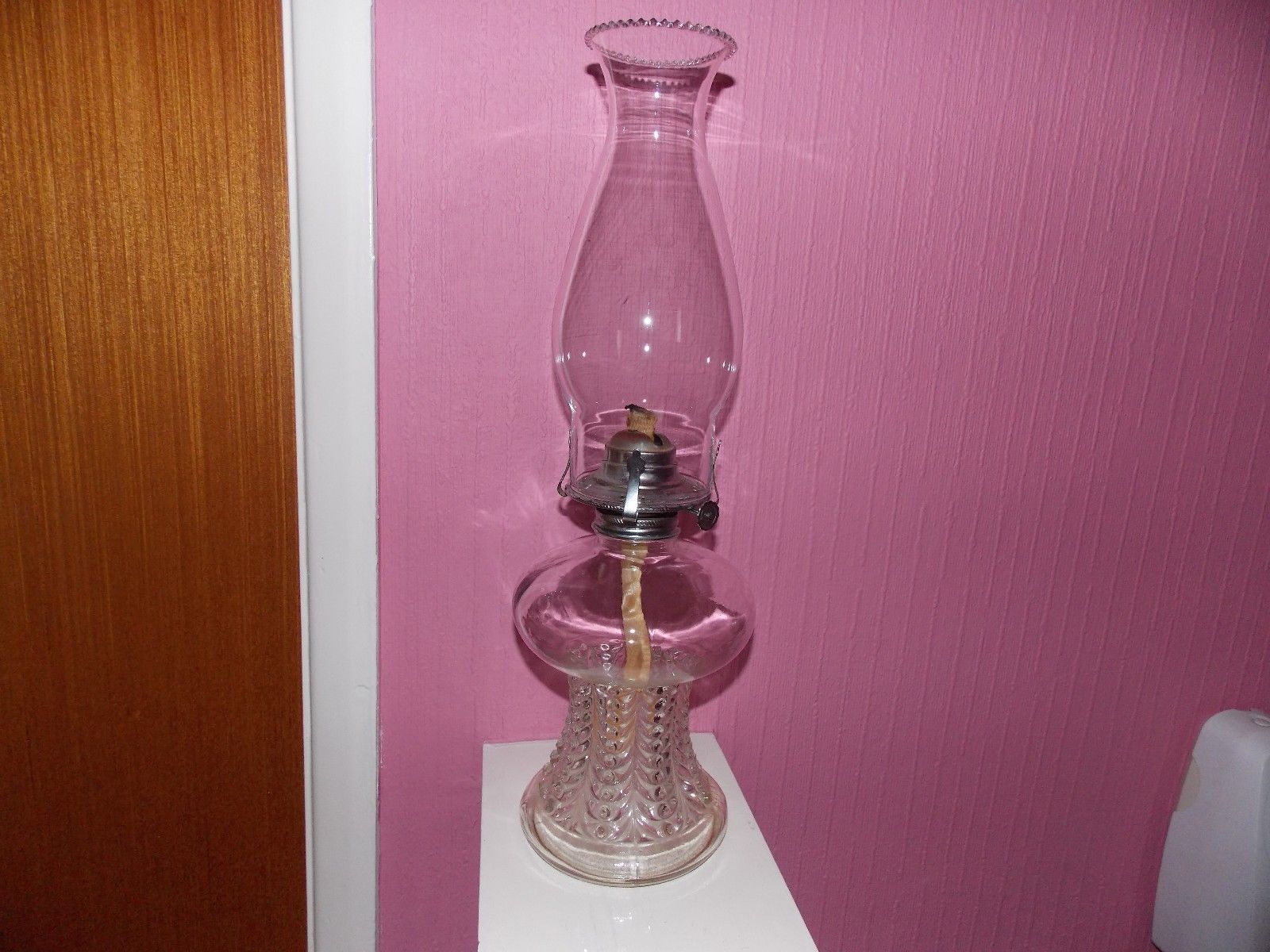 VERY GOOD CONDITION CLEAR GLASS OIL LAMP