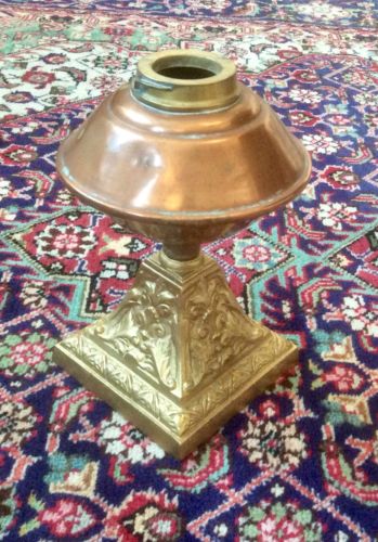 Antique Victorian Copper Reservoir Oil Lamp,Cast Metal Base,Upcycle,Steampunk