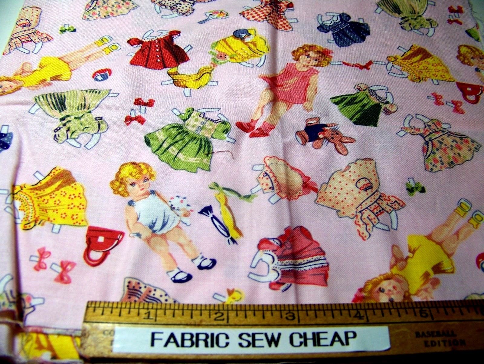 Title (ebay affiliate link): Vintage Cotton ~ SCRAP ~ PAPER DOLLS Multi-Colors 22"x9" Quilts Dolls Inv6