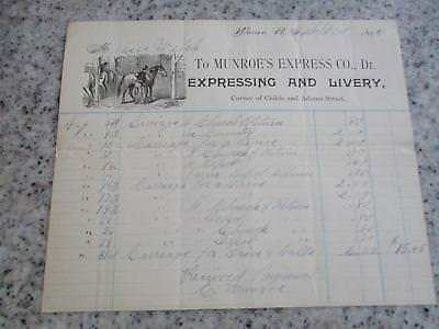 1890/94 ADVERTISING BILLHEADS WARREN RHODE ISLAND MUNROES EXPRESS LIVERY W/HORSE