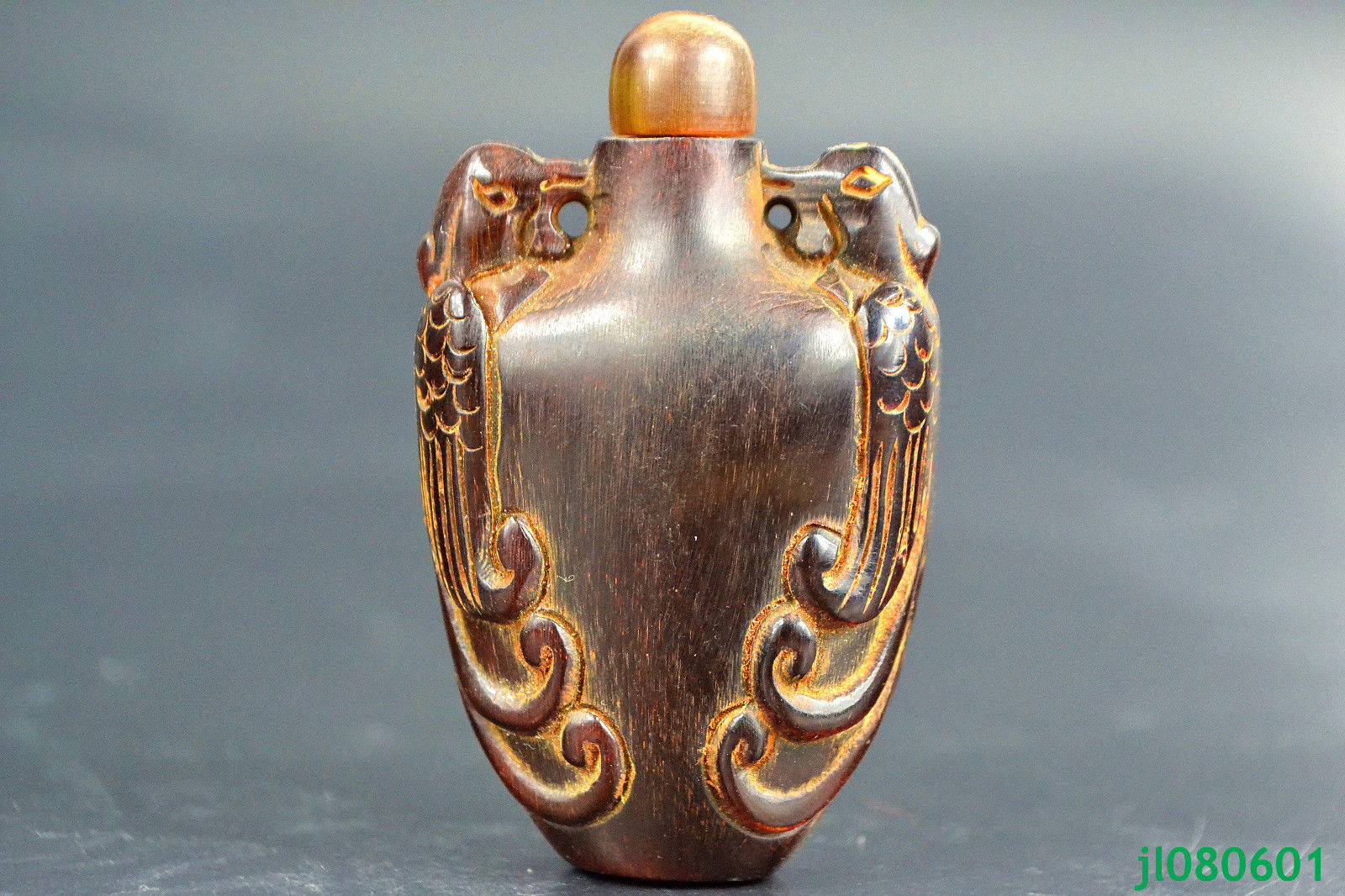 Vintage Collectible Chinese horn Handwork 2 crane carve lovely Snuff Bottle