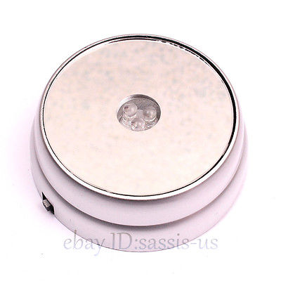 Title (ebay affiliate link): 3" Unique Crystal Display Base Portable Stand 3 LED Colors Light Bulb New Silver