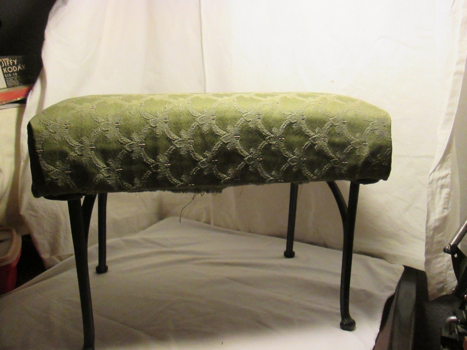 Title (ebay affiliate link): Vintage Wood Frame Foot STOOL METAL LEGS BLACK METAL LEGS 10 1/2" TALL VINTAGE