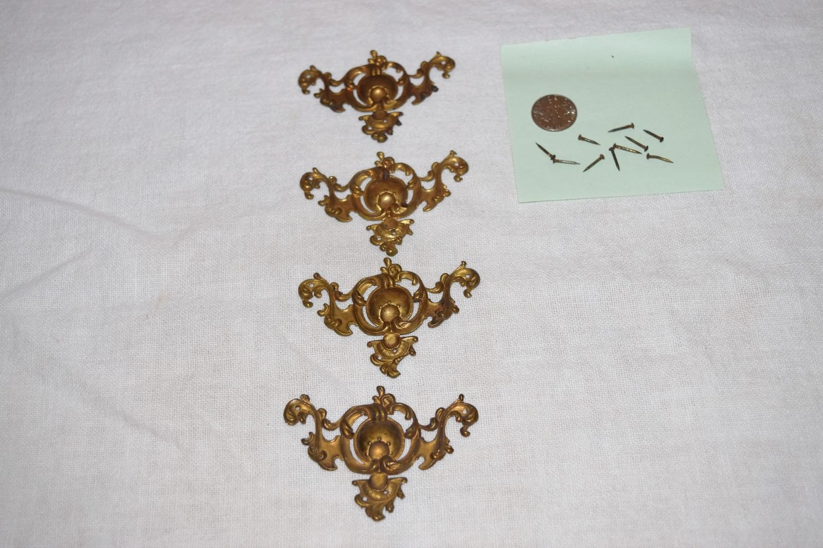 Title (ebay affiliate link): VINTAGE ANTIQUE BRASS EMBELLISHMENT FURNITURE SALVAGE 4 Piece Lot w/ Nails