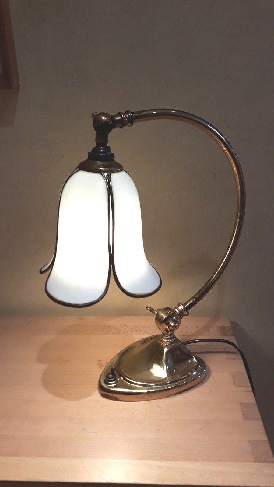 Title (ebay affiliate link): OLD BRASS HEART SHAPED TABLE LAMP WITH WHITE GLASS & BRASS SHADE