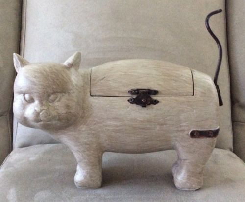 Title (ebay affiliate link): RARE Vintage Wood Carved Cat Jewelry Box w/Metal Tail & Latch Signed N.P