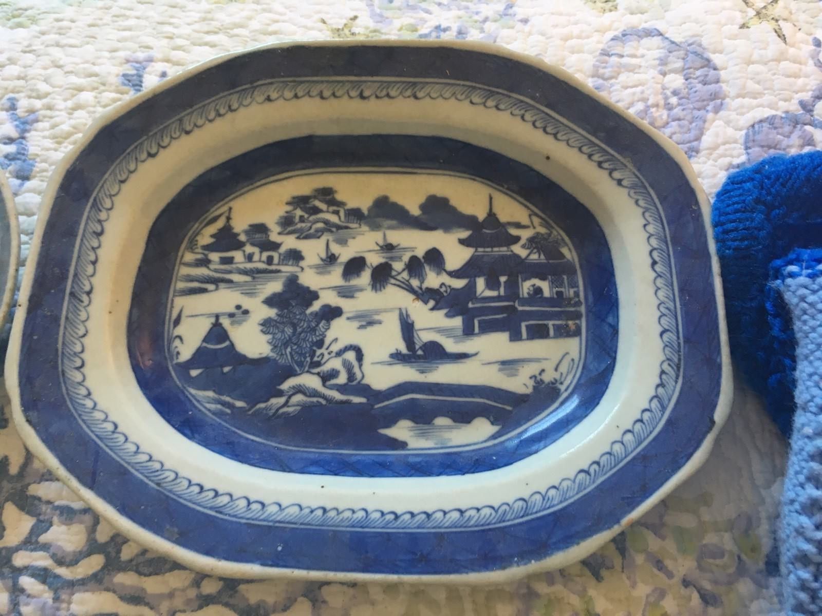 19th Century Blue Canton China Set, 36 Assorted Pieces