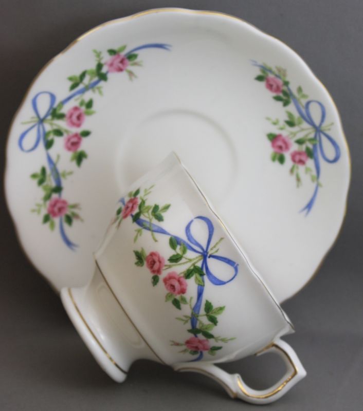Colclough Tea Cup & Saucer - Ribbons/Pink Roses  L356
