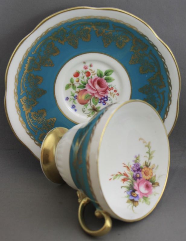 Foley Tea Cup & Saucer - Tourquiose/Gold Grapes/Flowers L354