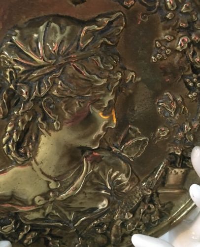 Title (ebay affiliate link): Exquisite Art Nouveau Bradley and Hubbard Brass Tray Plaque Woman Butterfly