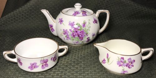 Title (ebay affiliate link): Hammersley VICTORIAN VIOLET Tea for One Set Mini Stacking teapot sugar creamer