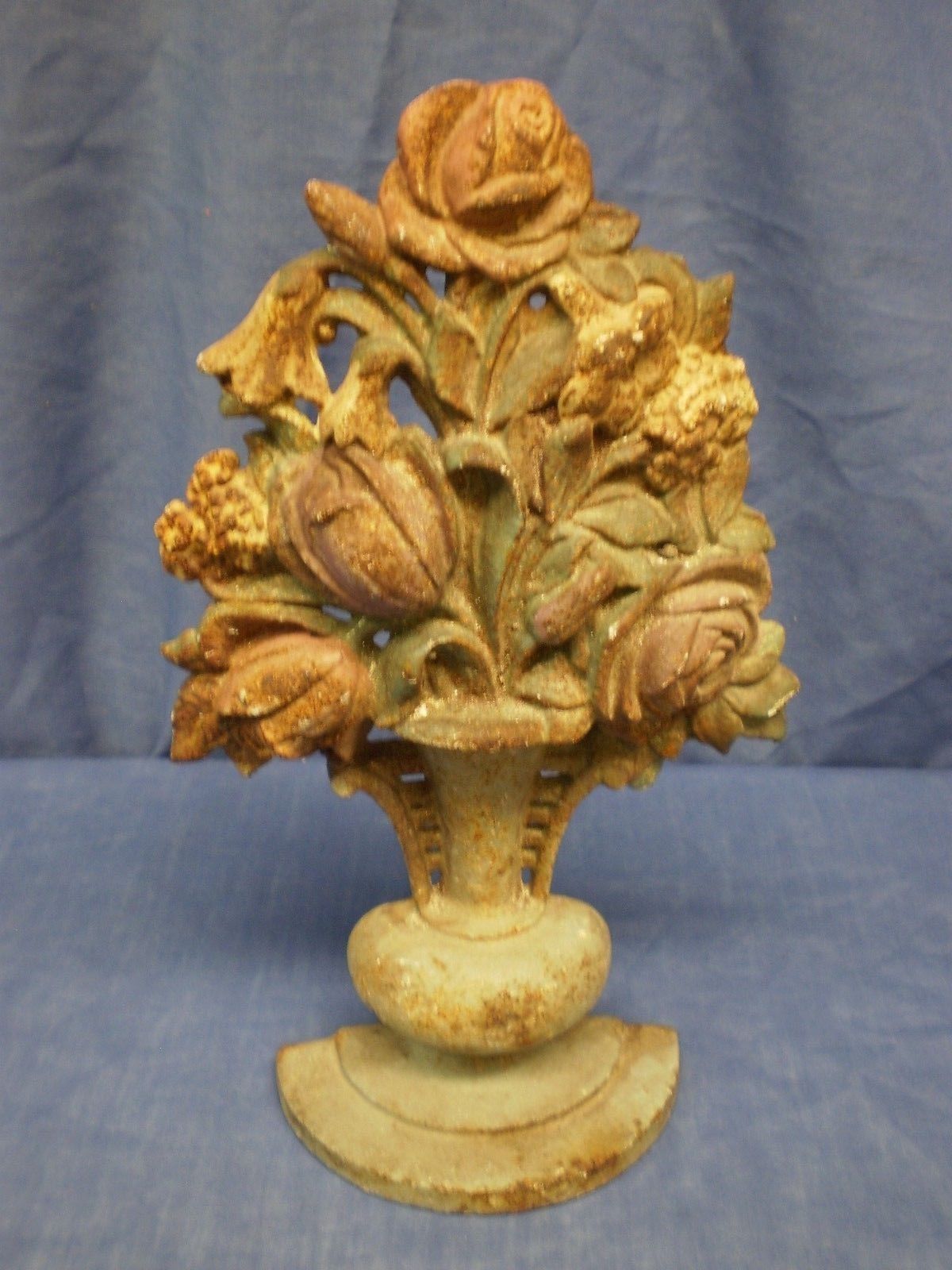 VINTAGE CAST IRON DOORSTOP FLOWER VASE BASKET ANTIQUE