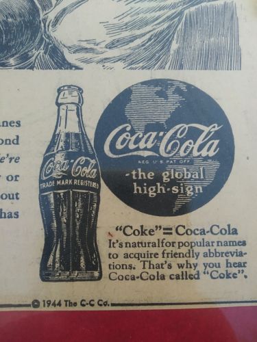 Vintage 1944 Original coca cola newspaper ad sign paper folk PALATKA COKE