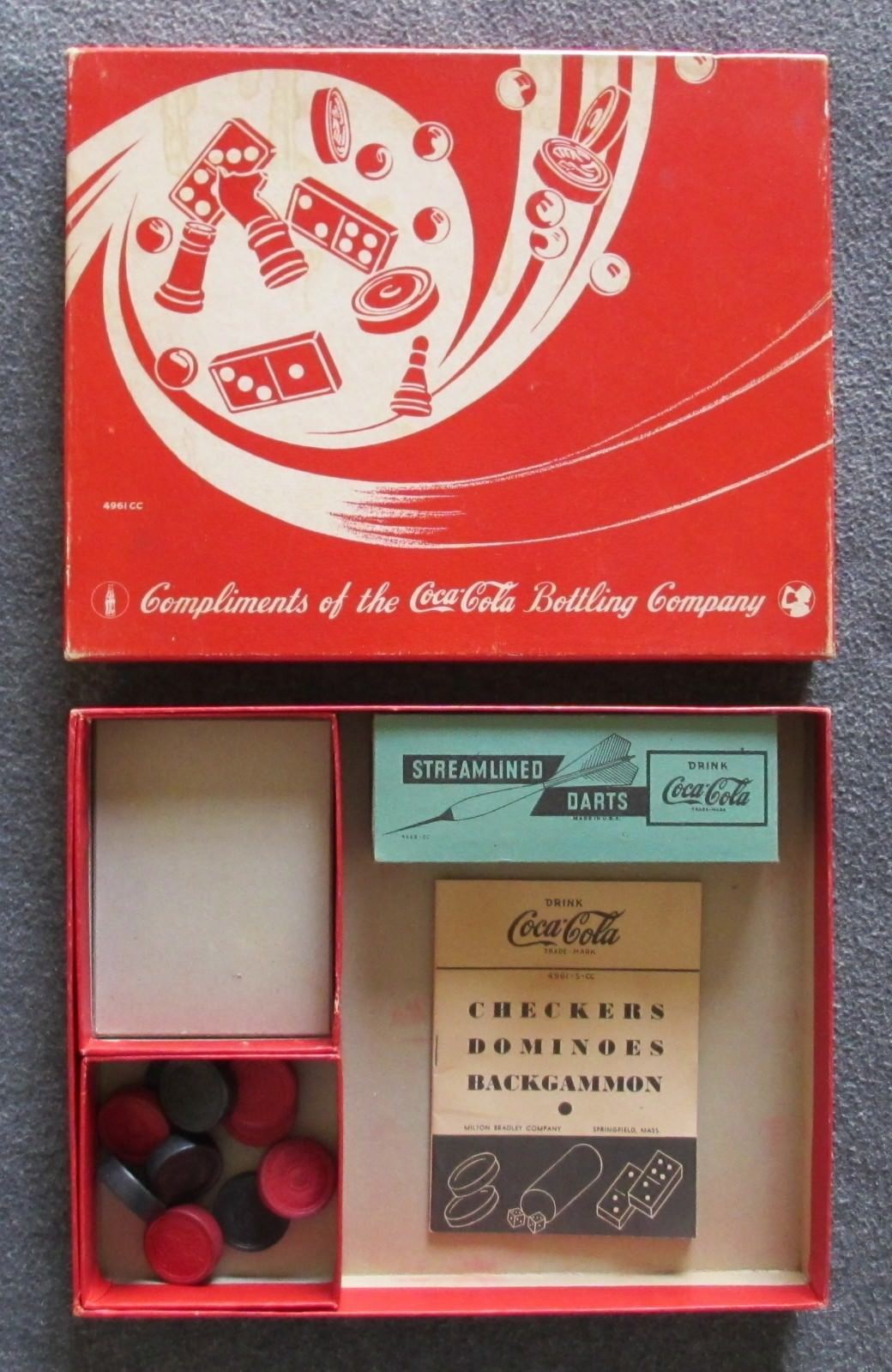 Title (ebay affiliate link): Vintage 1940s Milton Bradley COCA COLA RED BOX GAMES w/ Instructions + Darts