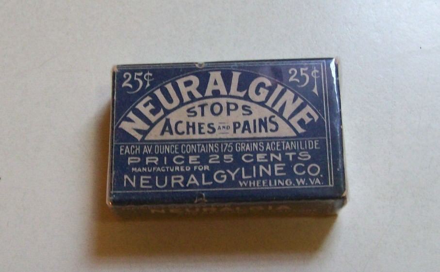 Title (ebay affiliate link): NEURALGINE, Stops Aches & Pains, Unopened with Contents. Made in Wheeling, W. VA