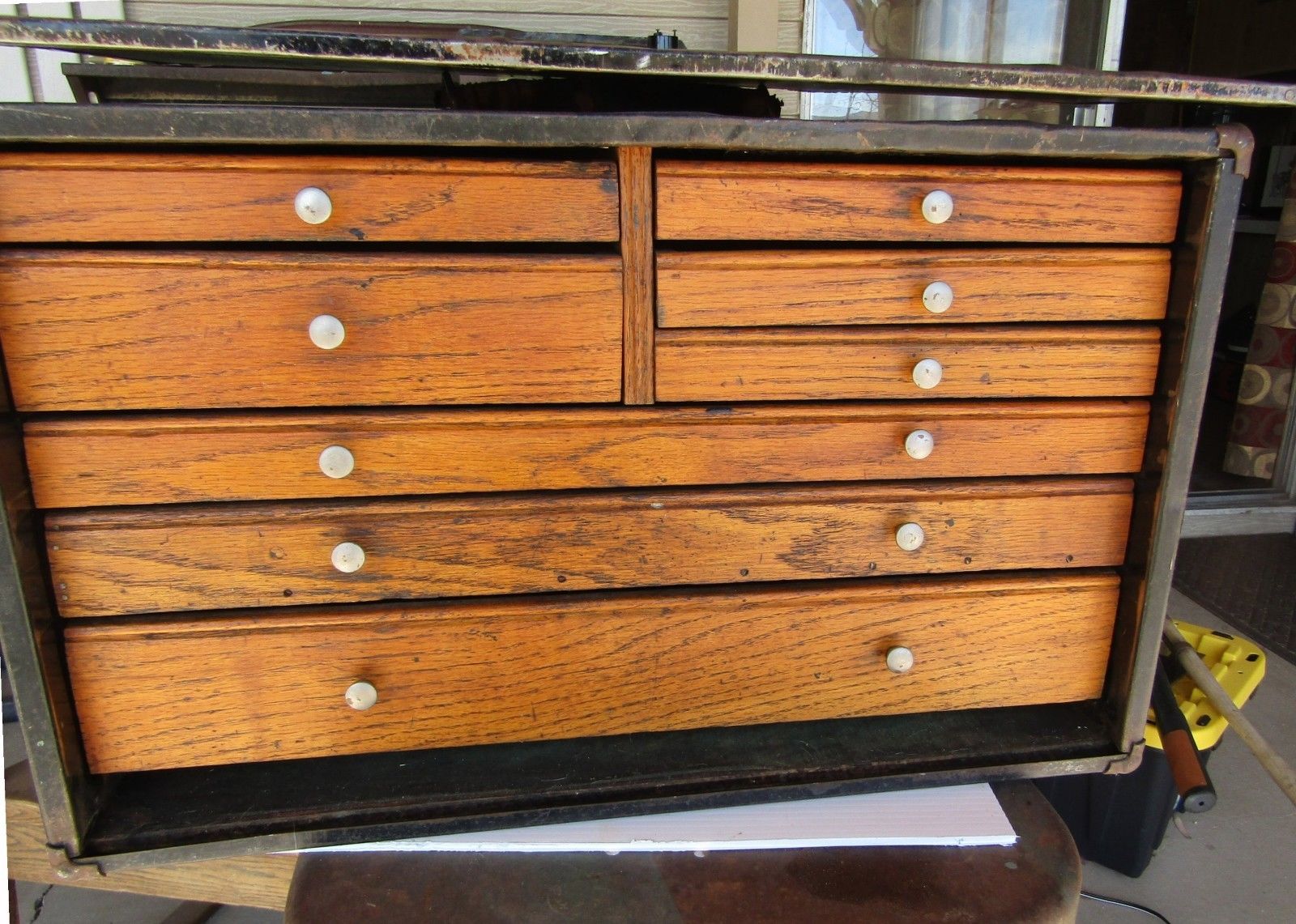 Machinist Tool Chest Oak Drawers with Metal covered Body