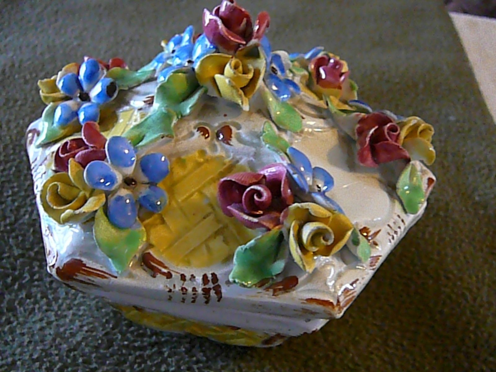 Title (ebay affiliate link): Antique Basket Weave Capodimonte Bowl w/Cover Numbered, Made in Italy, Rose