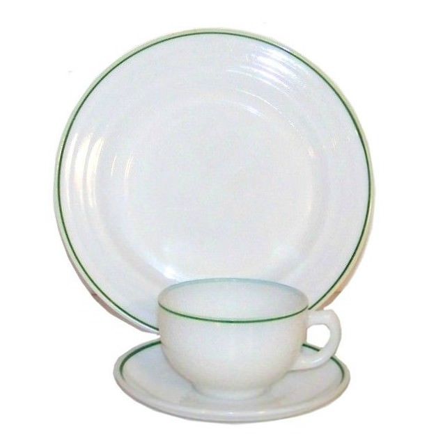 Title (ebay affiliate link): Lot 24 Pc Vtg Hazel Atlas Green Stripe Platonite Milk Glass Plates Cups Saucers